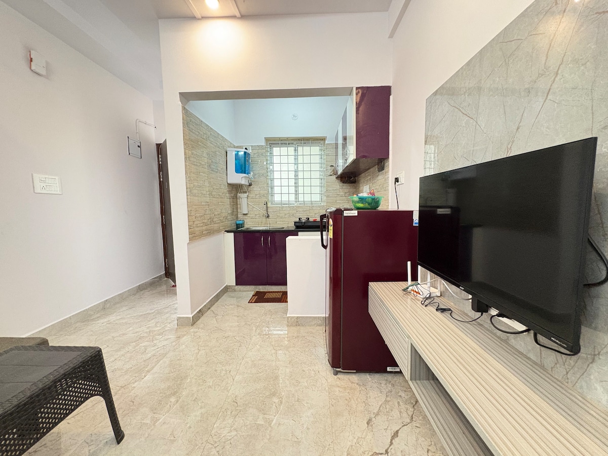 Stai în noul nostru apartament 1BHK din Electronic City Faza 1, la doar 2 minute de Neeladri Road. Amplasat pe o alee liniștită și pașnică, acest spațiu confortabil este perfect pentru două persoane, familii, persoane singure sau cupluri. Bucură-te de interioare în tonuri pastelate, Wi-Fi rapid, o bucătărie complet utilată, zonă de luat masa, lift, alimentare de rezervă și un smart TV de 40 de inch unde poți să te relaxezi cu Netflix. Ideal pentru muncă sau petrecere a timpului liber, cu cafenele, magazine și parcuri tehnologice în apropiere. O clădire sigură și calmă, cu tot ce trebuie pentru o ședere confortabilă.