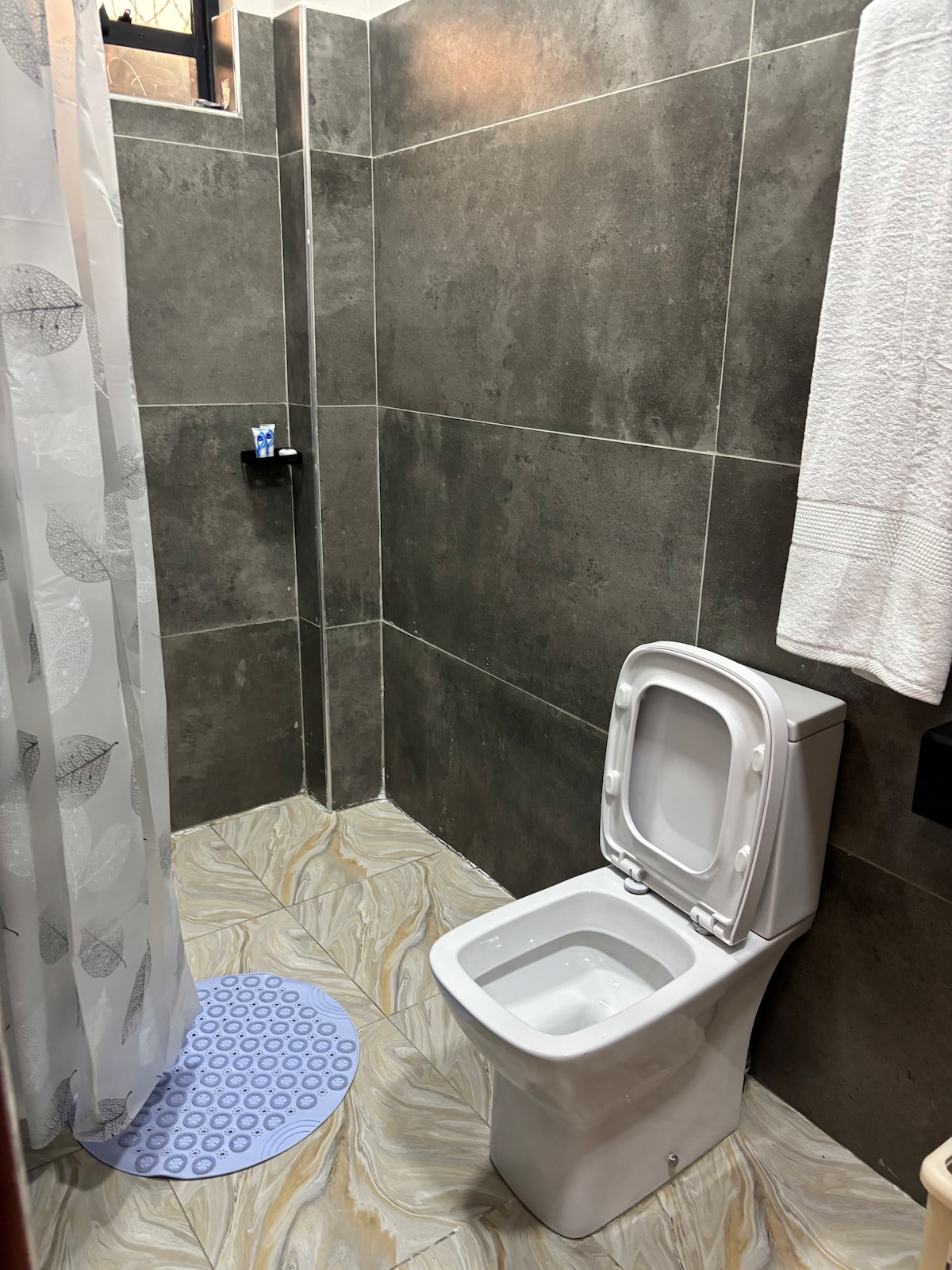 Bine ai venit la BNB-ul nostru cu 3 dormitoare și 2 băi, situat într-un cartier liniștit. Proprietatea oferă acces facil la aeroport și orașul Eldoret și are parcare amplă. Bucură-te de check-in independent, Wi-Fi rapid și un televizor inteligent în livingul spațios. Dormitorul principal are o baie privată și există o bucătărie complet utilată, cu acces la o curte în spate. Oaspeții au acces la o piscină comună și la o sală de gimnastică. Gazda este disponibilă pentru asistență. Bucură-te de confort, securitate și comoditate în timpul șederii.