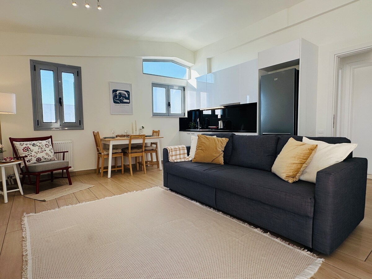 Penthouse with Panoramic Views on Athens' Riviera Wake up to abundant natural light and sweeping mountain or sea views from your expansive terrace—the perfect perch for morning coffee or intimate sunsets. This freshly renovated penthouse apartment in Glyfada offers easy access to both the beach and downtown Athens, giving you the best of both worlds: seaside relaxation and urban exploration.