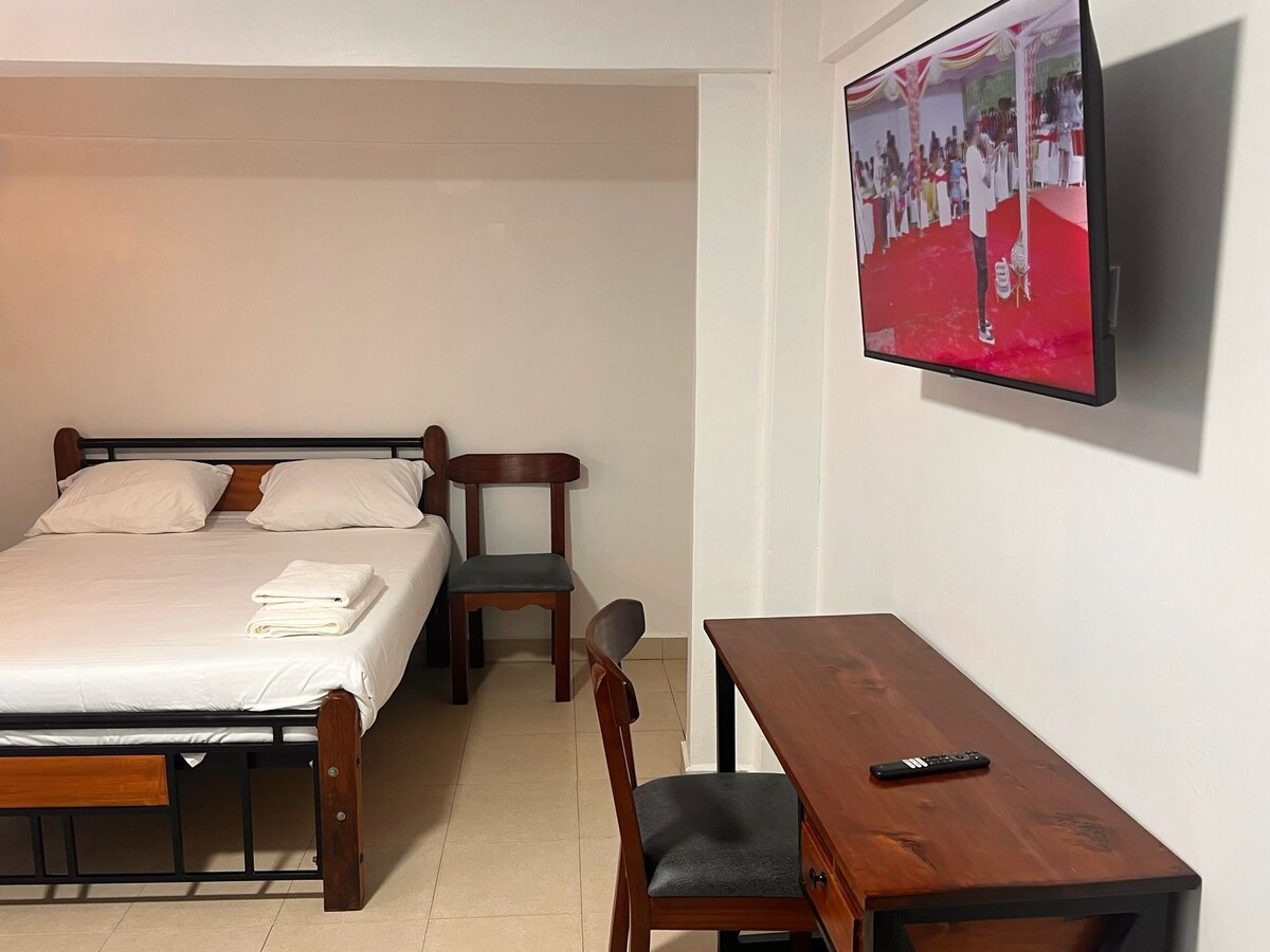 Apartamentul Orchards este conceput pentru a vă oferi confortul pe care îl meritați! Ne aflăm în Majimbo, lângă hotelul Gerish și piața majimbo. Întregul apartament (Orchards Suites) are 18 apartamente similare, toate disponibile atât pentru rezervări de scurtă durată, cât și pentru șederi de lungă durată. Mobilat rafinat, cu un pat matrimonial, te vei relaxa bucurându-te de internet de mare viteză și de Smart TV 43”. Apartamentul este la etajul 1 și este accesibil pe scări.
