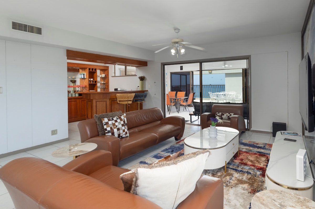 Apartament spațios cu 4 dormitoare, 4 băi, în plan deschis, situat pe plaja principală din Ballito (Willard Beach) și pe promenadă. Aer condiționat pe tot parcursul. Vedere la întrerupător din curtea pavată acoperită cu braai cu gaz. Bucătărie complet utilată, inclusiv frigider/congelatoare, cuptor cu microunde, cuptor, plită, mașină de spălat vase, uscător automat de rufe, aparat Nespresso. Wi-Fi. Garaj dublu și 2 locuri de parcare. Piscină în complex. Distanță de mers pe jos până la magazine. NU acceptăm rezervări Matric Rage. Acest complex nu acceptă animalele de companie
