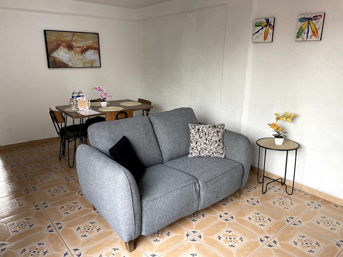 Din 2018, Un Lugar Tuyo en Cdmx înseamnă încredere totală și exclusivitate cu familia sau prietenii; confort, curățenie, zgomot urban zero, independență, liniște, securitate și odihnă. Se compune dintr-o sufragerie mică și bucătărie, baie și dormitor cu 2 paturi + 1 single, într-o proprietate în complex rezidențial. Situat la primul etaj. Cu acces la Metrobus, Metro Bellas Artes, la 12 minute de Zócalo. Șederea ta de lungă durată va fi mai confortabilă cu reduceri săptămânale și lunare. Bine ai venit!