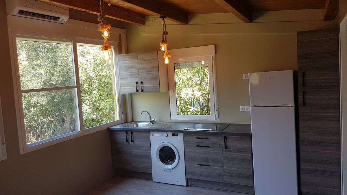 Minicasa tranquila între pini a tocar de la platja