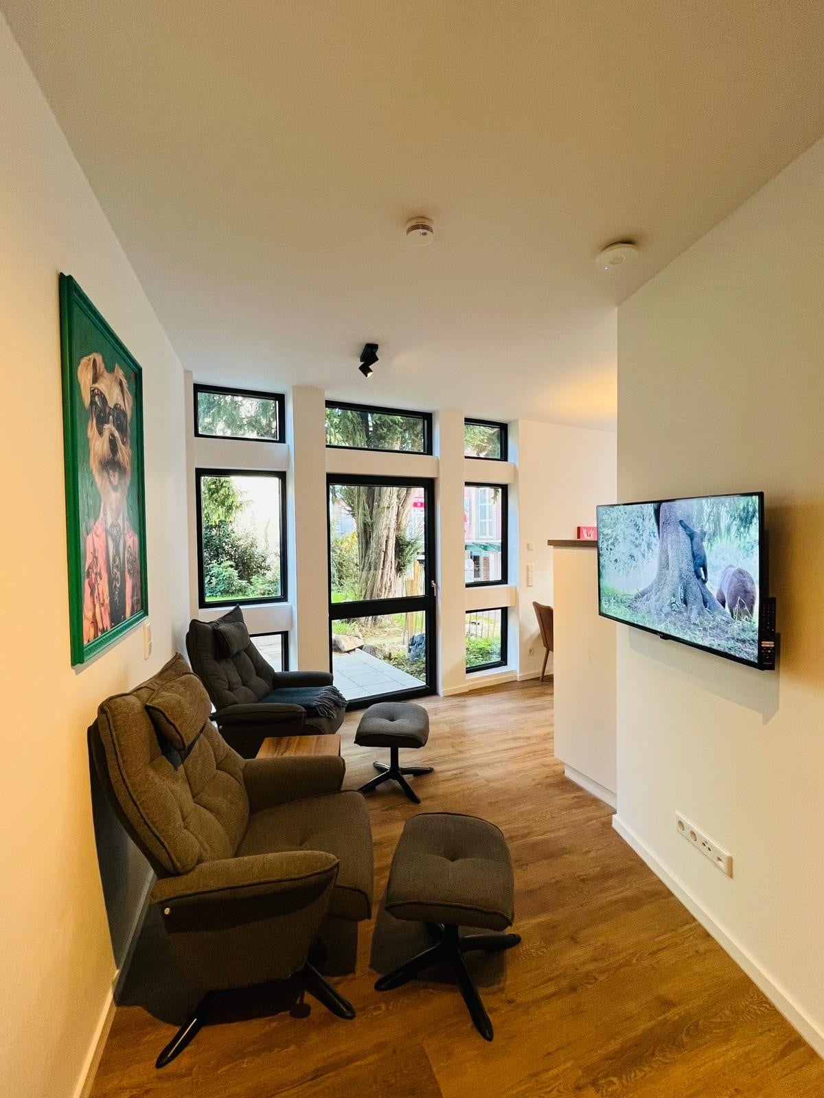 Relaxează-te în acest apartament elegant cu 2 camere, care este înconjurat de parcuri. Pe jos, puteți ajunge la Lacul Aasee în 8 minute și la catedrală în 20 de minute. O stație de autobuz (7,15,16) este la ușă, iar pentru cei care sosesc cu mașina privată există un loc de parcare TG la un cost suplimentar. În dormitor există un pat dublu, iar în living, o canapea extensibilă. Bucătăria este aprovizionată cu tot ce ai nevoie. De la balconul acoperit din vest te poți bucura de apus.