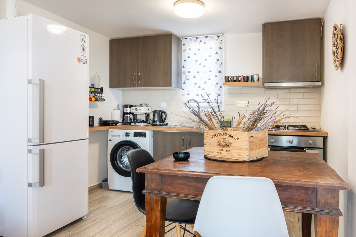2 Bedroom Hidden Gem in Ios town is a fully renovated apartment that can accommodate up to 5 guests. It is located in the centre of Ios, two minutes walking distance from the main bus station. The town is 5 minutes drive from the port of Ios and 5 minutes drive from Mylopotas beach. We provide Free Transfer to the port!