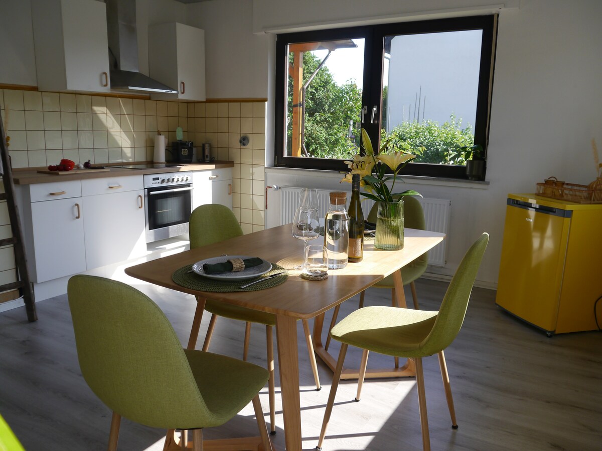 Unsere gemütliche Ferienwohnung liegt idyllisch im Grünen - der perfekte Rückzugsort für alle, die Ruhe und Erholung suchen. Umgeben von Wäldern und frischer Luft genießen Sie hier naturnahe Entspannung fernab vom Alltagstrubel. Die Wohnung bietet Platz für zwei bis vier Personen und ist komfortabel ausgestattet mit einer gut ausgestatteten Küche, einem hellen Wohnbereich mit Schlafcouch, einem Schlafzimmer und einem Außenbereich mit Blick ins Grüne und einer tollen Aussicht über Eppenbrunn.