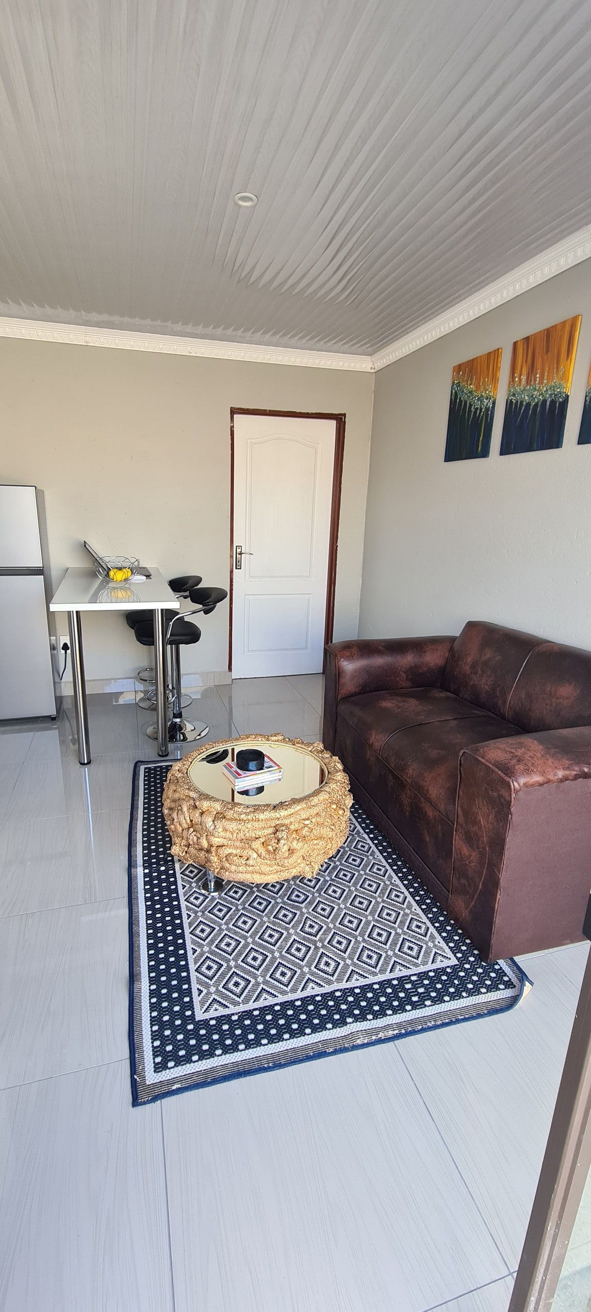Bucurați-vă de o experiență elegantă în acest loc central. Relaxează-te după o zi lungă lângă un șemineu confortabil sau uită-te la televizor pe un televizor inteligent cu ecran mare sau braai afară, într-un șemineu bine conceput. O bucătărie complet mobilată, lenjerie de pat crocantă și curată și un duș curat vor asigura un sejur confortabil. O noapte bună de odihnă pe patul nostru matrimonial te va face să strălucești a doua zi. Unitatea este dotată cu apă de rezervă (rezervor de jojo) și un gheizer solar. Puterea de rezervă asigură o putere non-stop pentru televizor și wifi.