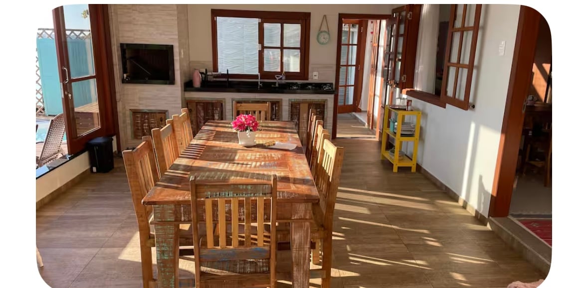 Casă pe malul apei — confort și liniște pentru cele mai bune momente. Situată în cartierul Salinas, o zonă de lux din Barra do Sul, casa noastră oferă cadrul perfect pentru a te bucura de zile de neuitat cu familia și prietenii. Există 6 dormitoare, plus un living mare și bucătărie cu vedere la mare, oferind o experiență completă și o conexiune cu natura Toate camerele au aer condiționat, Wi-Fi și o zonă completă de grătar, ideală pentru a aduna oamenii pe care îi iubești.