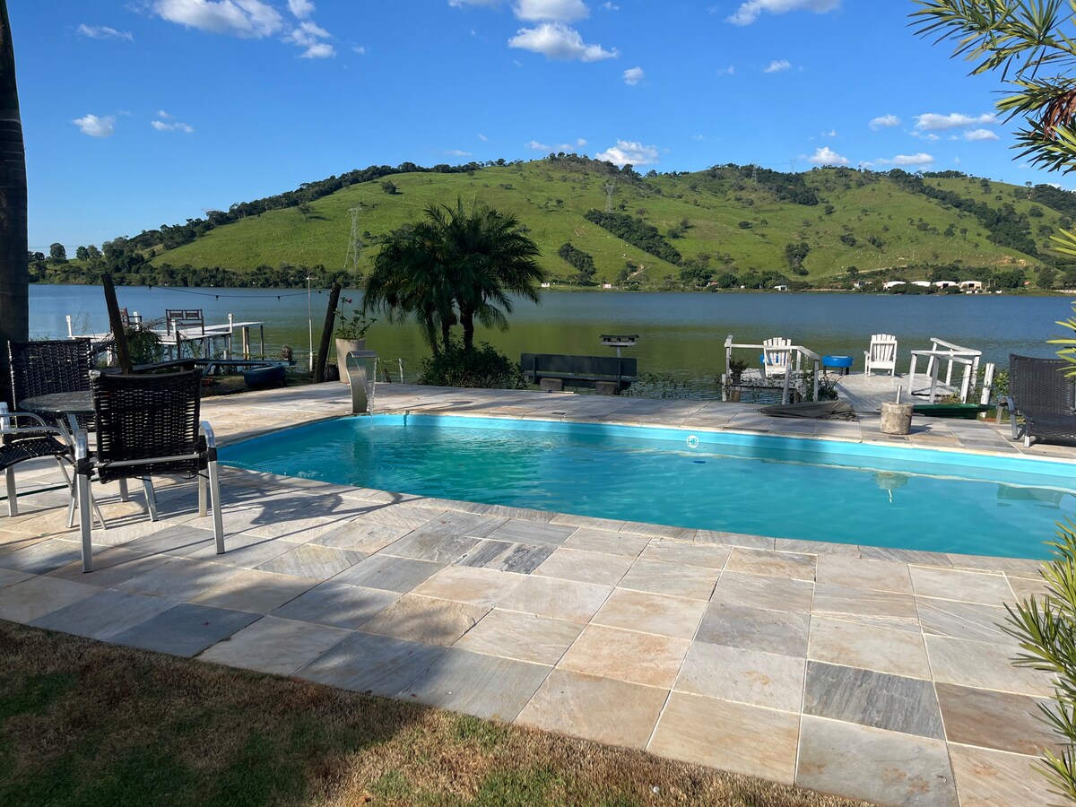 PROMOȚIE: 400,00 R$ REDUCERE ÎN WEEKEND (DE VINERI PÂNĂ DUMINICĂ) PENTRU CEI CARE APELEAZĂ CHATUL PLATFORMEI. Casa găzduiește până la 20 de persoane și are divertisment pentru întreaga familie. Adu-ți barca de canotaj (Stand up, canoe sau caiac) și distrează-te accesând lacul de la Hud's Restaurant. Debarcader privat pentru pescuit, piscină încălzită (vezi prețurile pentru acest serviciu), grătar, cadă cu hidromasaj, masă de biliard, trambulină pentru copii, garaj acoperit pentru 5 mașini, șemineu și multe altele.