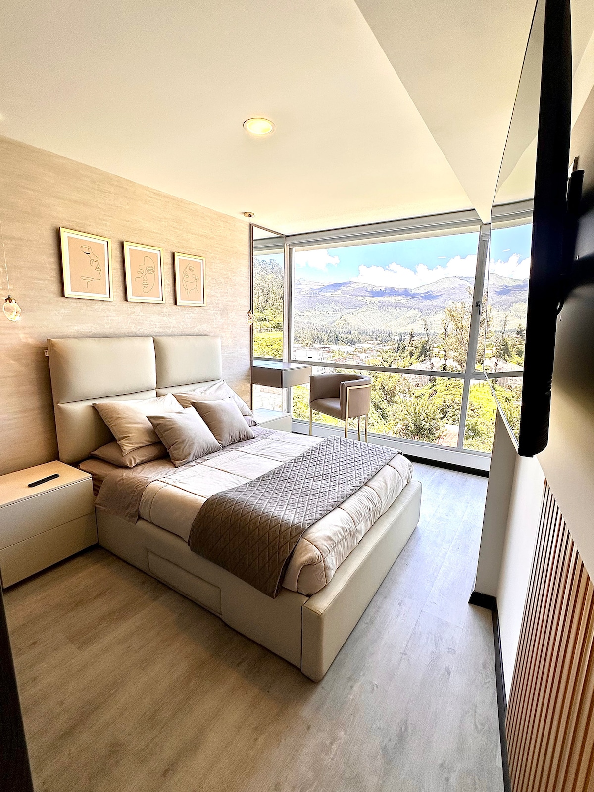 Apartament frumos situat în nordul Quito, ideal pentru familii și prieteni. Are spații sociale și o priveliște frumoasă, este complet echipat pentru confortul tău total. Este foarte aproape de Comitatul Shopping, cu opțiuni de mers pe jos sau de condus, datorită apropierii sale. Foarte aproape de locuri turistice, inclusiv de mijlocul lumii. Clădirea are o priveliște privilegiată și diferite dotări de care să te bucuri în timpul șederii tale.