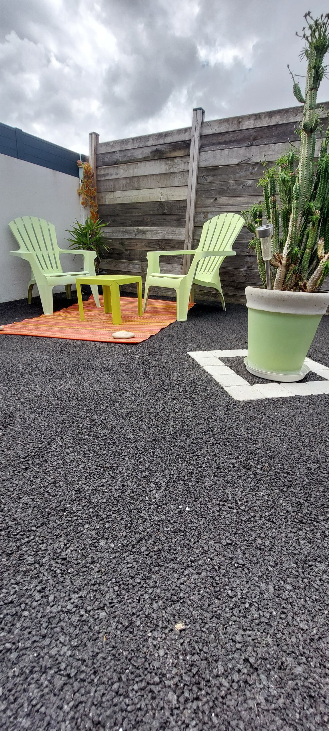 Vino și odihnește-te în această casă confortabilă, cu o curte pavată privată, aproape de ocean, cu un apus de soare frumos. Situat la 15’ de La Rochelle și 20’ de podul Île de Ré. Găsește tot confortul cu o bucătărie utilată: cuptor cu microunde, plită cu inducție, aparat de cafea, ceainic... O baie cu lenjerie de pat și uscător de păr furnizate Odihnește-te într-un pat matrimonial de 160 cm cu o saltea de hotel (cearșafuri furnizate) cu dressing. Televizor echipat cu Chromecast și Netflix, Wi-Fi gratuit.