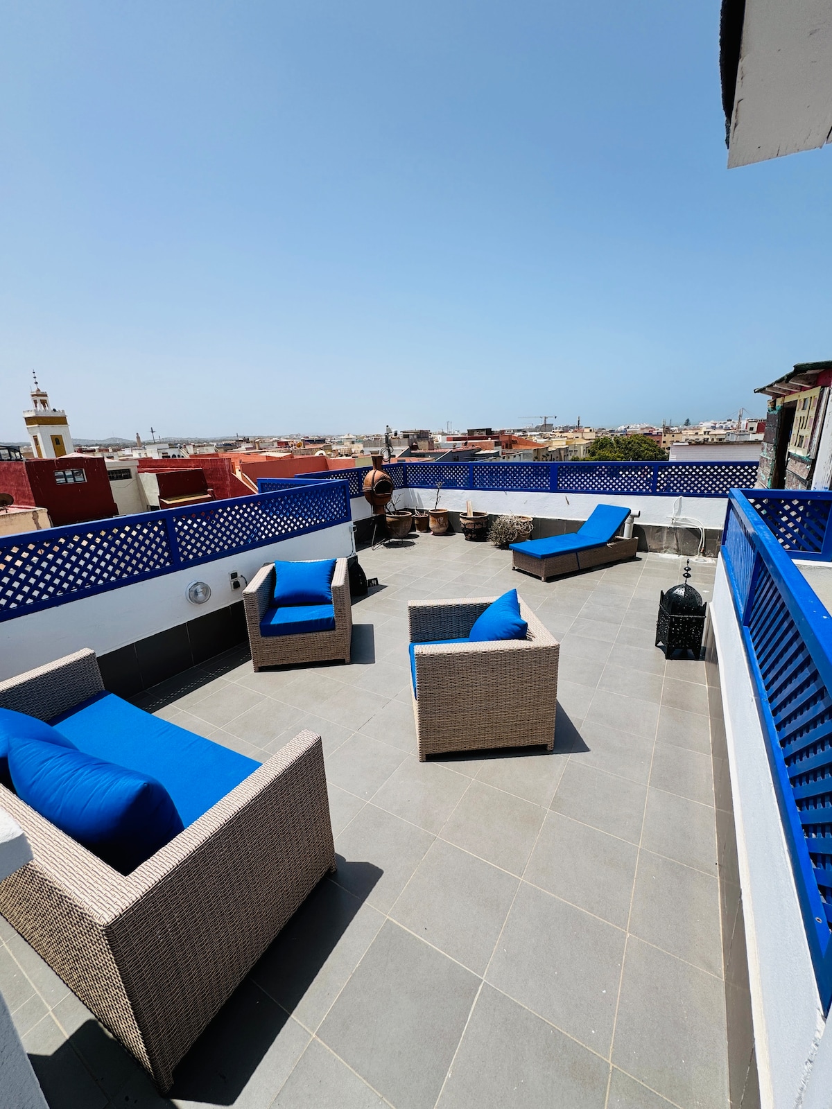 Studio atypique et lumineux sur un grand rooftop féerique privée, au sommet de La Casa Guapa. Chambre cosy avec lit king-size, salle d’eau, cuisine extérieure en bois sous pergola, vue sur la médina et l’océan. Idéal pour une escapade à deux, au calme, en pleine lumière dans un lieu magique et atypique. Coin repas, transats, Wi-Fi. Situé dans un quartier authentique et vivant, à moins de 10 min de la plage et 20 min de la Médina. Services sur demande : transferts, massages, activités...
