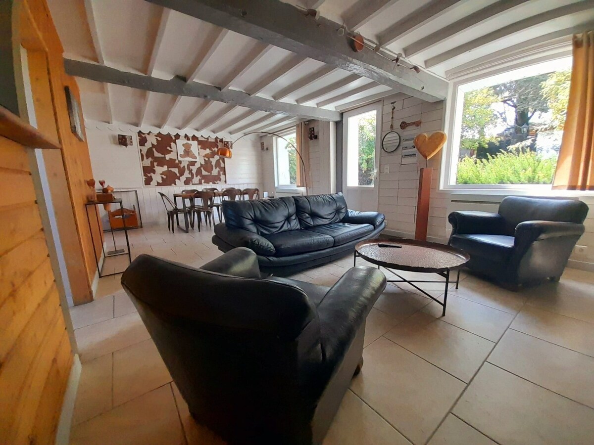 Cazare cu aer condiționat 5 camere pentru 8 persoane, bucătărie, terase, Living cu canapea extensibilă, 3 dormitoare, inclusiv garsonieră, 3 WC și 3 dușuri Cameră de relaxare cu saună și jacuzzi cu 6 locuri, lounge pe terasă. Sală de jocuri, fotbal de masă, pinball, darts și terminal ARCADE, jocuri de societate 2 biciclete electrice, masă de ping-pong Piscină încălzită de la 05/01 la 09/30, living, pergolă, plajă. Terasă cu masă de tacâmuri 10/12, copertină, grătar cu gaz Cazare cu acces direct la piscină