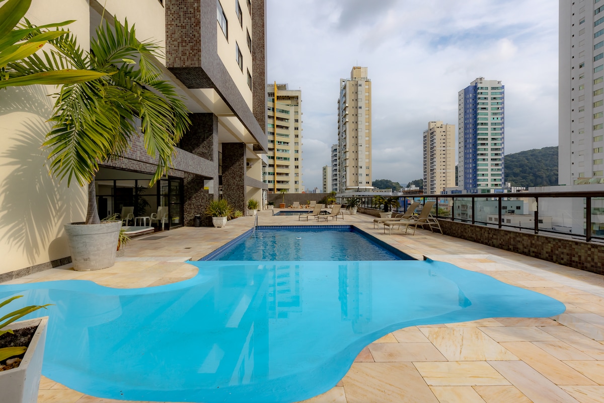 Apartament complet pentru o ședere uimitoare, conține balcon cu grătar, internet cu fibră optică, aer condiționat cald/rece, bucătărie completă cu aparate, cum ar fi cuptor electric, cuptor cu microunde, blender, aparat de făcut sandvișuri și aparat de cafea. Se pot utiliza zonele comune ale condominiului, cum ar fi piscina în aer liber și piscina încălzită, sala de jocuri, sauna și sala de gimnastică . Apartamentul este aproape de comerțul local și la 450 de metri de plaja Bombas. 1 parcare în interiorul condominiului.