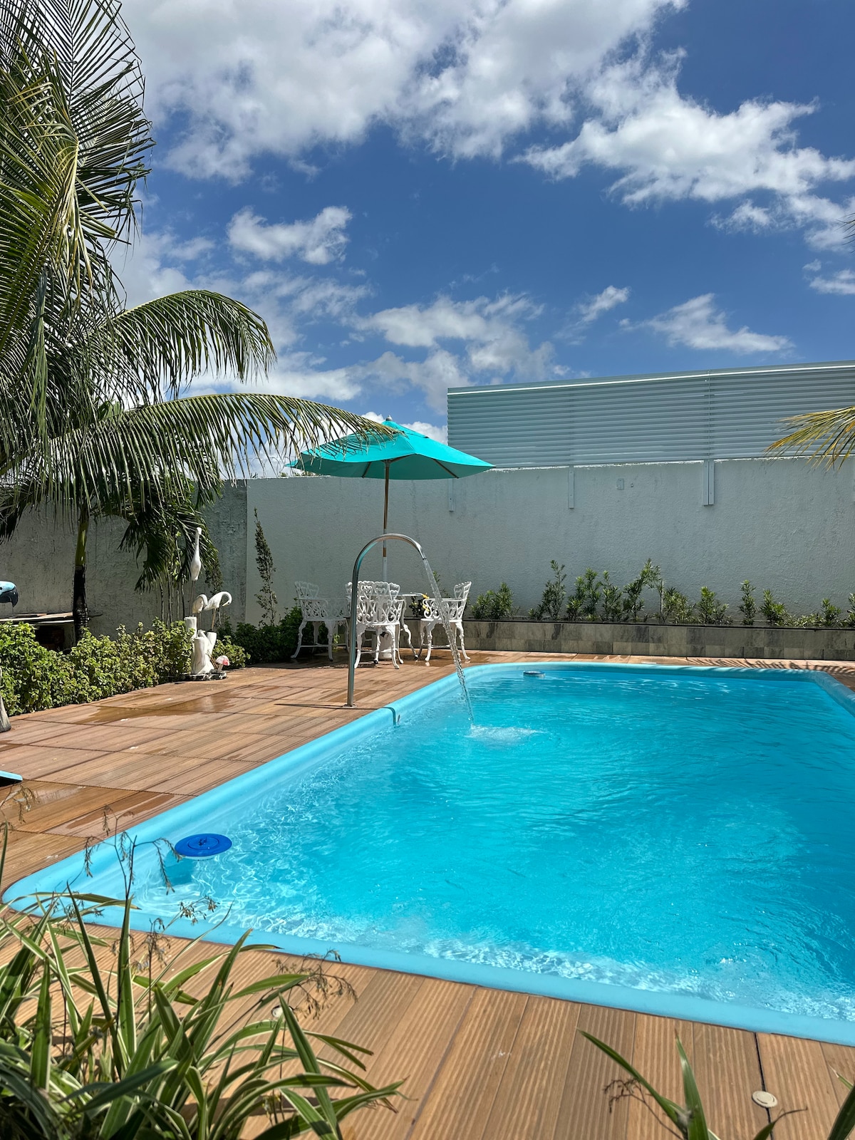 Leve toda a família a este ótimo lugar com muito espaço para se divertir. A casa está em um condomínio fechado com infraestrutura de resort. Possui piscina privativa, chuveirão, área gourmet com churrasqueira, e uma cama elástica para as crianças se divertirem. Três suítes com duas camas de casal em cada uma delas, ar-condicionado de gaveta, banheiro com chuveiro elétrico e closet. Possui redário e jardim. Cozinha bem equipada, sala ampla com TV 55 polegadas. Rede wi-fi. Somos pet friendly.