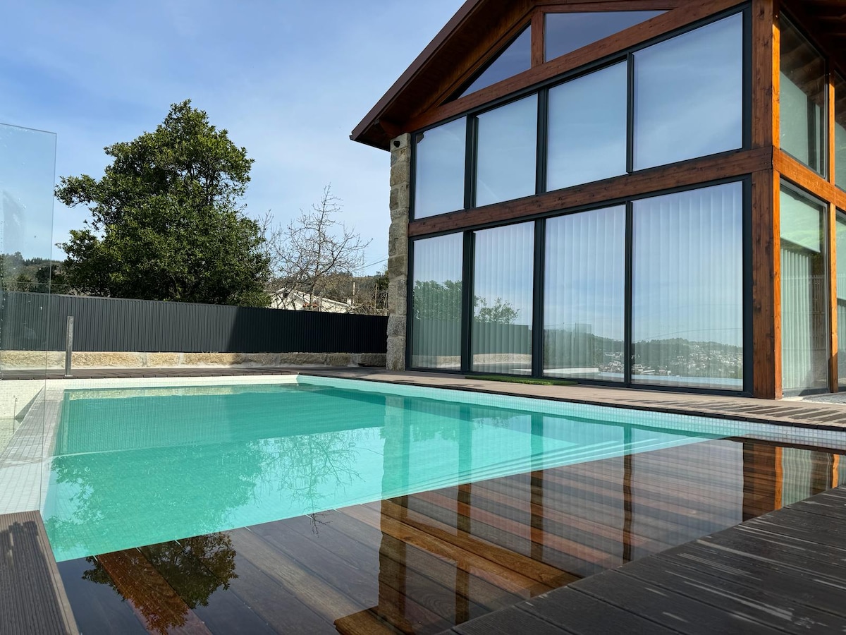 Romantic retreat in the historic center of Amarante. This romantic and rustic chalet for 2 to 4 people offers stunning views of the city and the river, a private pool heated to 30 degrees all year round, a soaking tub, and a cozy atmosphere with a fireplace for cooler days. Perfect for a couple's getaway, with comfort including air conditioning throughout the house and high-speed WIFI. Experience the poetry of Amarante just steps from the main attractions.