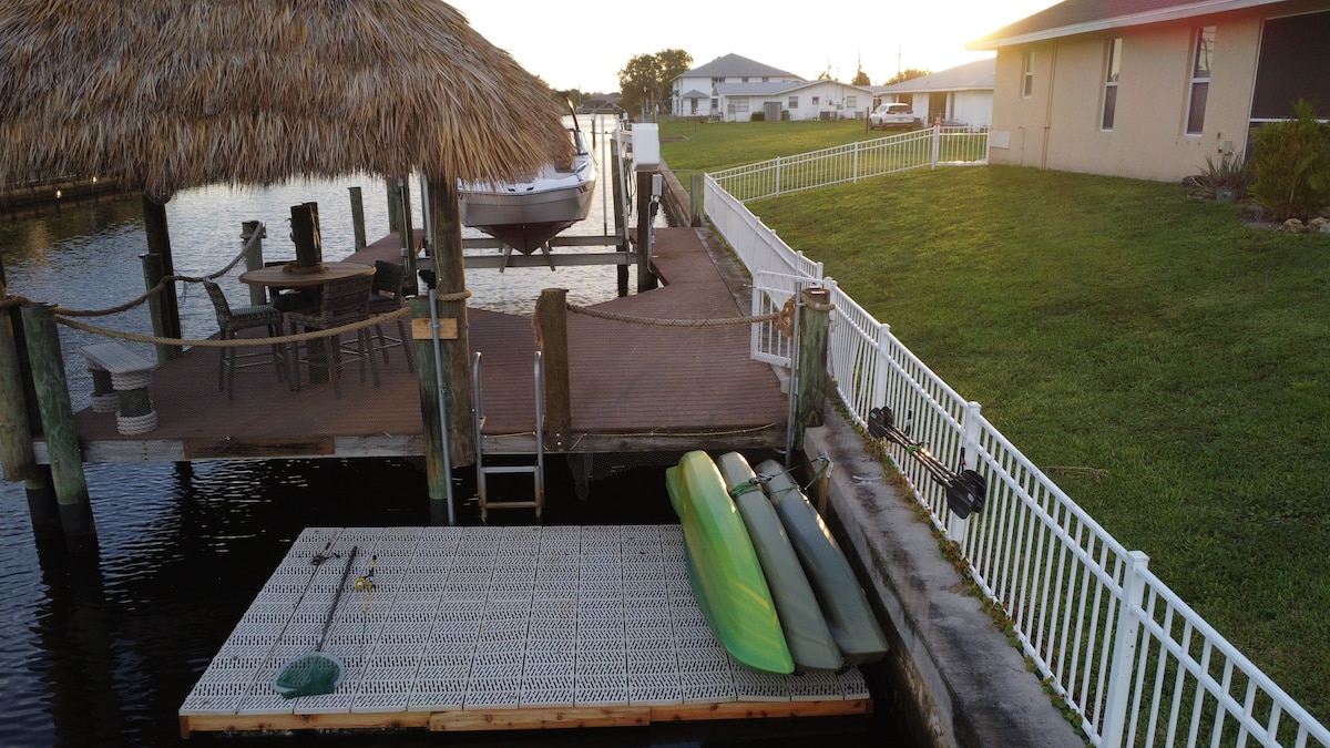 Relaxează-te și reîncarcă-te în această locuință spațioasă cu 3 dormitoare și 2 băi, cu piscină privată și spațiu flexibil pentru vizuină. Situat într-o comunitate liniștită pe malul râului, cu rampă privată pentru bărci și acces la docuri, perfect pentru plimbări cu barca, pescuit, caiac și vâslit. Bucură-te de dușul în aer liber, de vatra de foc și de oaza liniștită din curtea din spate. Aproape de plaje, parcuri, cumpărături și mese — escapada ideală pentru relaxare sau aventură în însorita Florida de Sud-Vest.