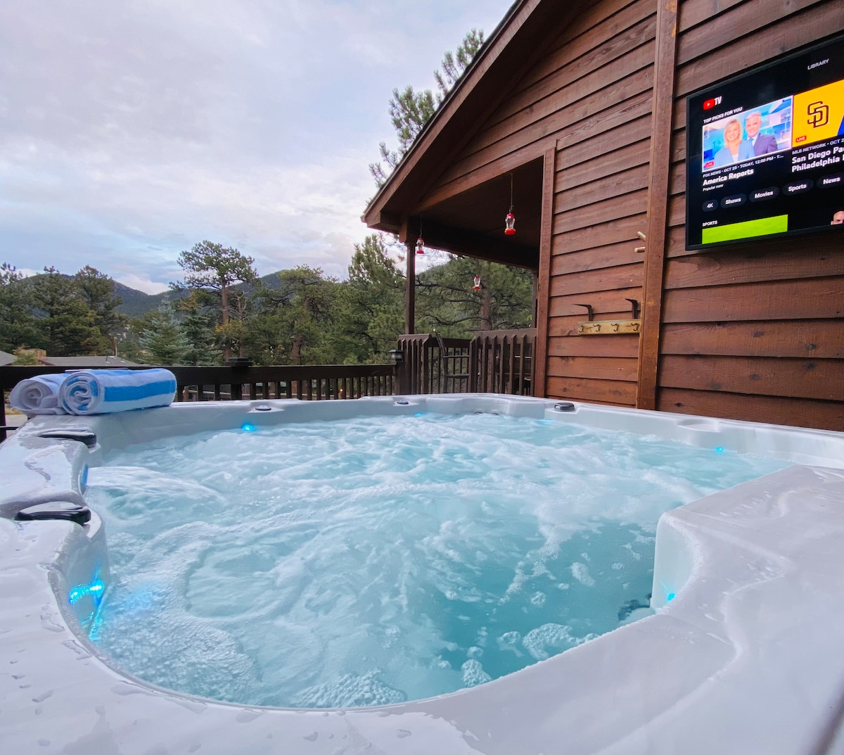 Autorizație Estes 3460 Cu o cadă cu hidromasaj NOUĂ, TV inteligent în aer liber, sală de jocuri, teren PRIVAT de pickleball, coș de baschet la sol, bucătărie complet aprovizionată, 2 șeminee în interior și o groapă de foc afară, dotări potrivite pentru copii/copii, încărcător EV și 2 garaje auto, te vei simți ca acasă și nu vei rămâne niciodată fără lucruri de făcut! La câteva minute de centrul orașului Estes, teren de golf, mese, cumpărături și Parcul Național Munții Stâncoși, această casă cu 4 dormitoare și 3 băi este locul perfect pentru cumpărături, aventură și distracție.