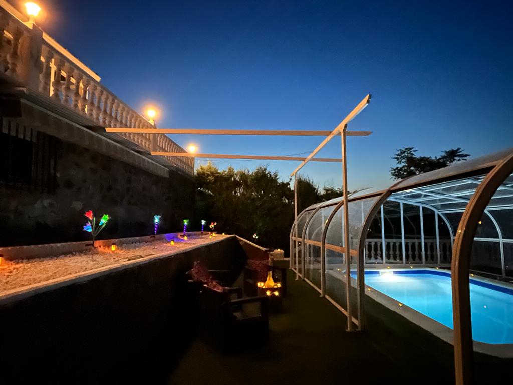 Cabană construită în 2019 cu licență pentru închirieri non-turistice pe termen scurt. Vila are tot confortul pentru a te bucura de ședere. Eficiență energetică A. Este pregătit pentru până la 7 persoane, deoarece are WiFi în tot parcela (300 MB), piscină (cu piscină pentru copii adiacentă), foișor cu grătar din cărămidă, mai mult de 400m2 de iarbă artificială, jacuzzi interior, Ps4, proiector HD, jocuri de masă,... dar nu pentru petreceri ale burlacilor sau evenimente similare
