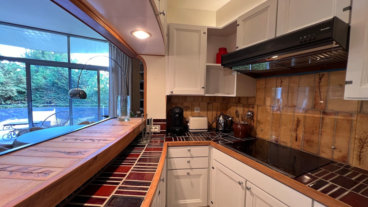 Apartament atipic, complet refăcut. Într-o pivniță veche transformată într-o reședință, accesezi apartamentul traversând o curte pavată umbrită. Sub acoperișuri, acest apartament fermecător cu cadru expus este dotat cu aer condiționat reversibil. Oaspeții se pot bucura de terasa orientată spre sud și de accesul direct la port. Bucătăria este foarte bine echipată, TV și Wi-Fi la dispoziția ta. Pat confortabil de 160 de paturi într-o cameră separată cu aer condiționat.