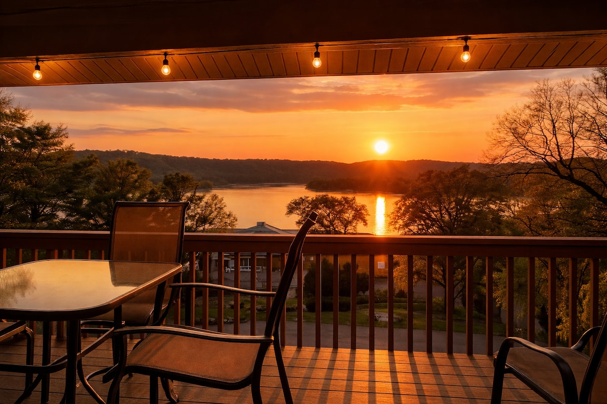 Acest apartament recent renovat de la Anchors Point are cea mai frumoasă priveliște din Kimberling City. Perfect pentru o familie care pleacă la lac vara sau la o vacanță de iarnă confortabilă. Wi-Fi și cablu țin pe toată lumea conectată. Există un port de agrement în apropiere, unde biletele sunt disponibile pentru închiriere. Aproape de cumpărături și restaurante. 15 minute până în orașul Silver Dollar. suficient de aproape de Branson, dar departe de toată aglomerația. Te vei întoarce din nou și din nou.