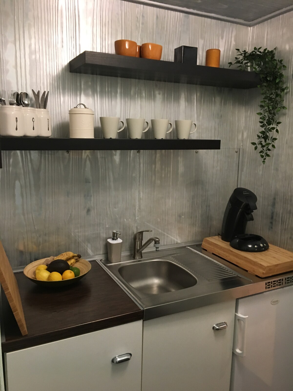 O cameră închisă confortabilă, perfect mobilată, cu baie privată, balcon și bloc de bucătărie încorporat (aparat de cafea Nespresso, ceainic, cuptor cu microunde, aragaz, frigider mic, chiuvetă și veselă/tacâmuri) K E I N E posibilitatea de a găti . Sat/TV și Wi-Fi gratuit pentru „Două persoane” într-o locație liniștită în Schwabing, direct pe Grădina Engleză. În câteva minute poți ajunge la U-Bahn (U6 ) și autobuzul Aeroportului Lufthansa Express.