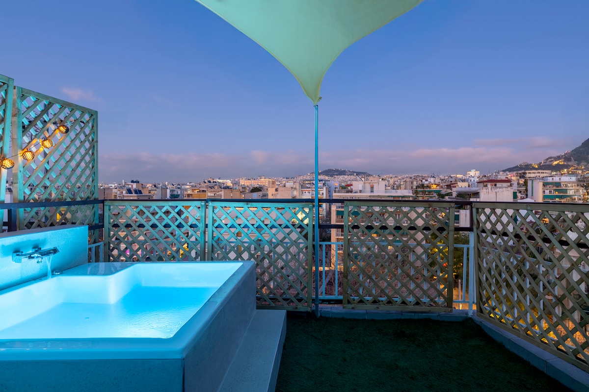 Penthouse Aether • Jacuzzi și vedere la Acropole