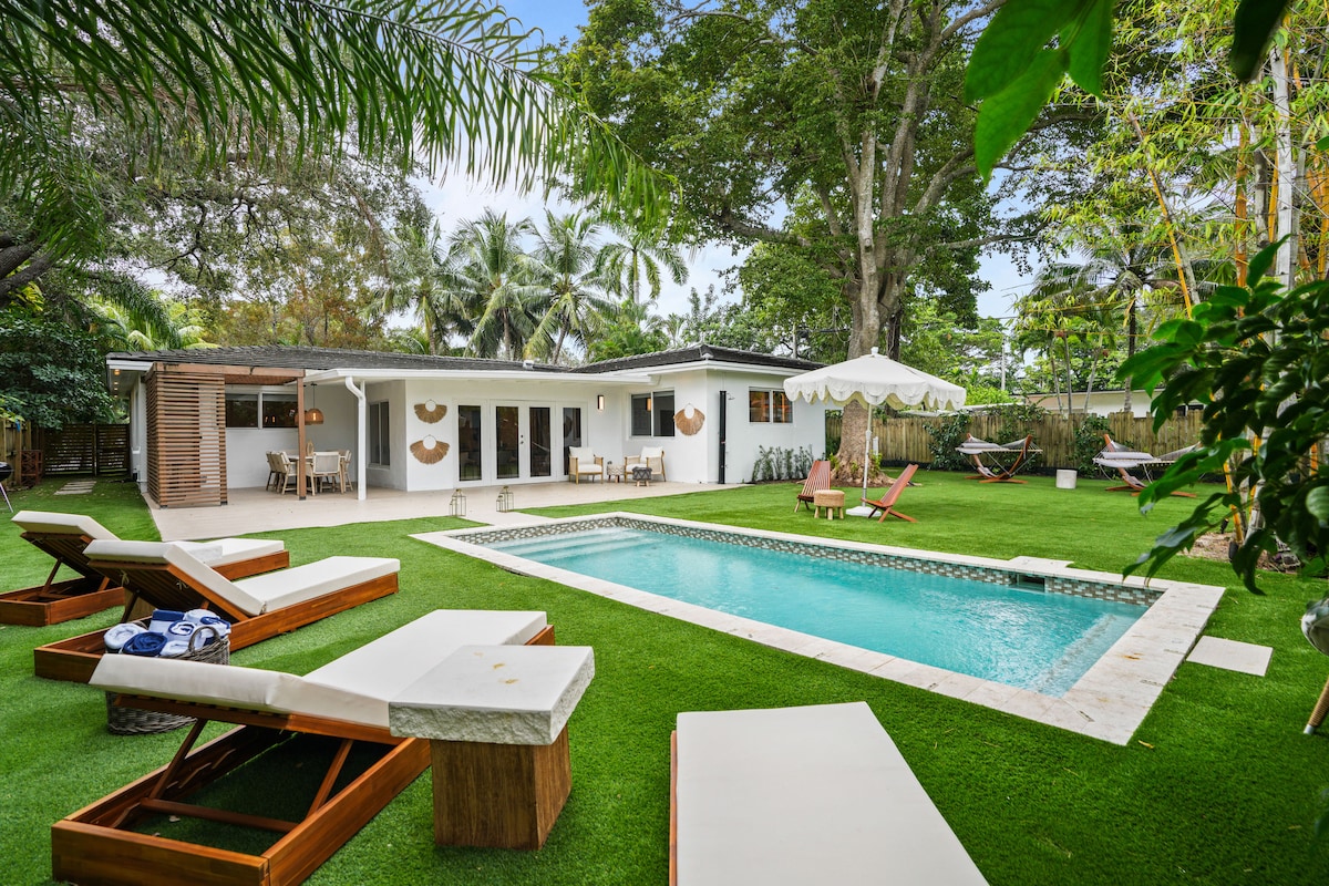 Această mini-stațiune uimitoare a fost creată având în vedere confortul suprem al oaspeților noștri. Bucură-te de o curte și o punte pentru piscină, proiectate cu o mulțime de scaune în aer liber și o colibă tiki. Proprietatea are iarbă sintetică, perfectă pentru copii și familie pentru a sta și a se juca. Wi-Fi foarte rapid. porturi USB în dormitor. Pat super confortabil. televizor inteligent pe care le puteți Stream filmele preferate la. Combinație mașină de spălat/uscător. Grătar în aer liber. Locuința noastră este situată la câteva minute de centrul orașului și de plaja/ faleza Hollywood.