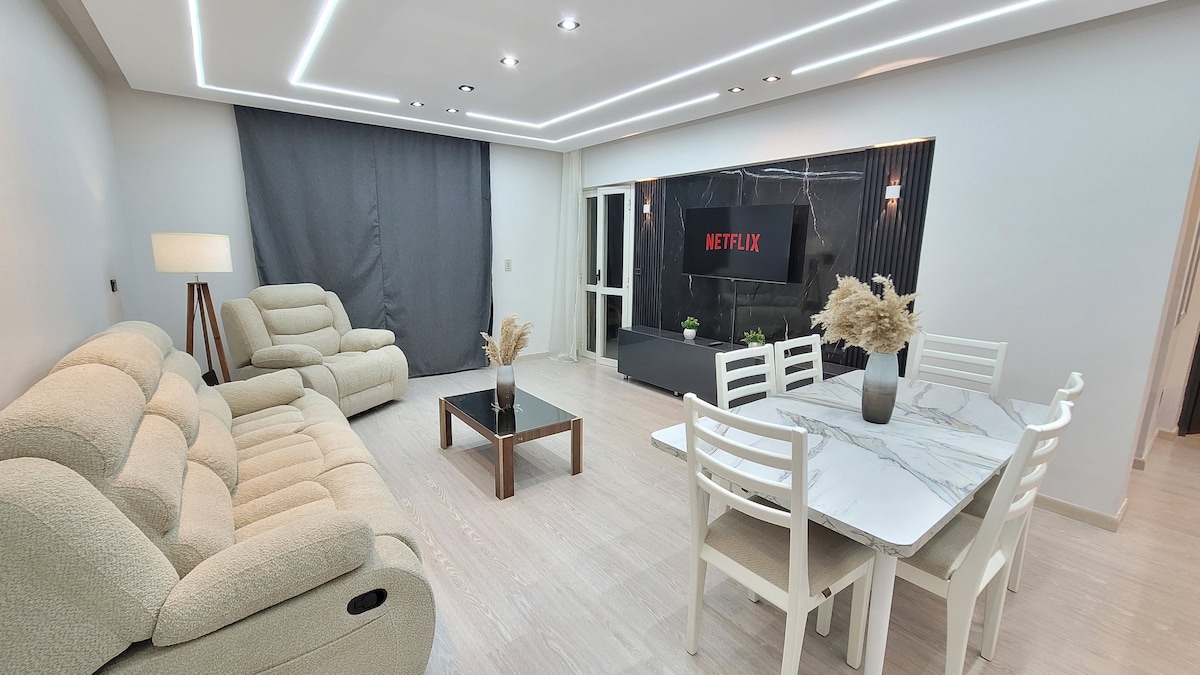 Scor mediu de 4,97 din 5, 60 recenziiConfortabil|Apartament elegant, 3 minute până la Al Rehab|Pat și canapea extensibilă