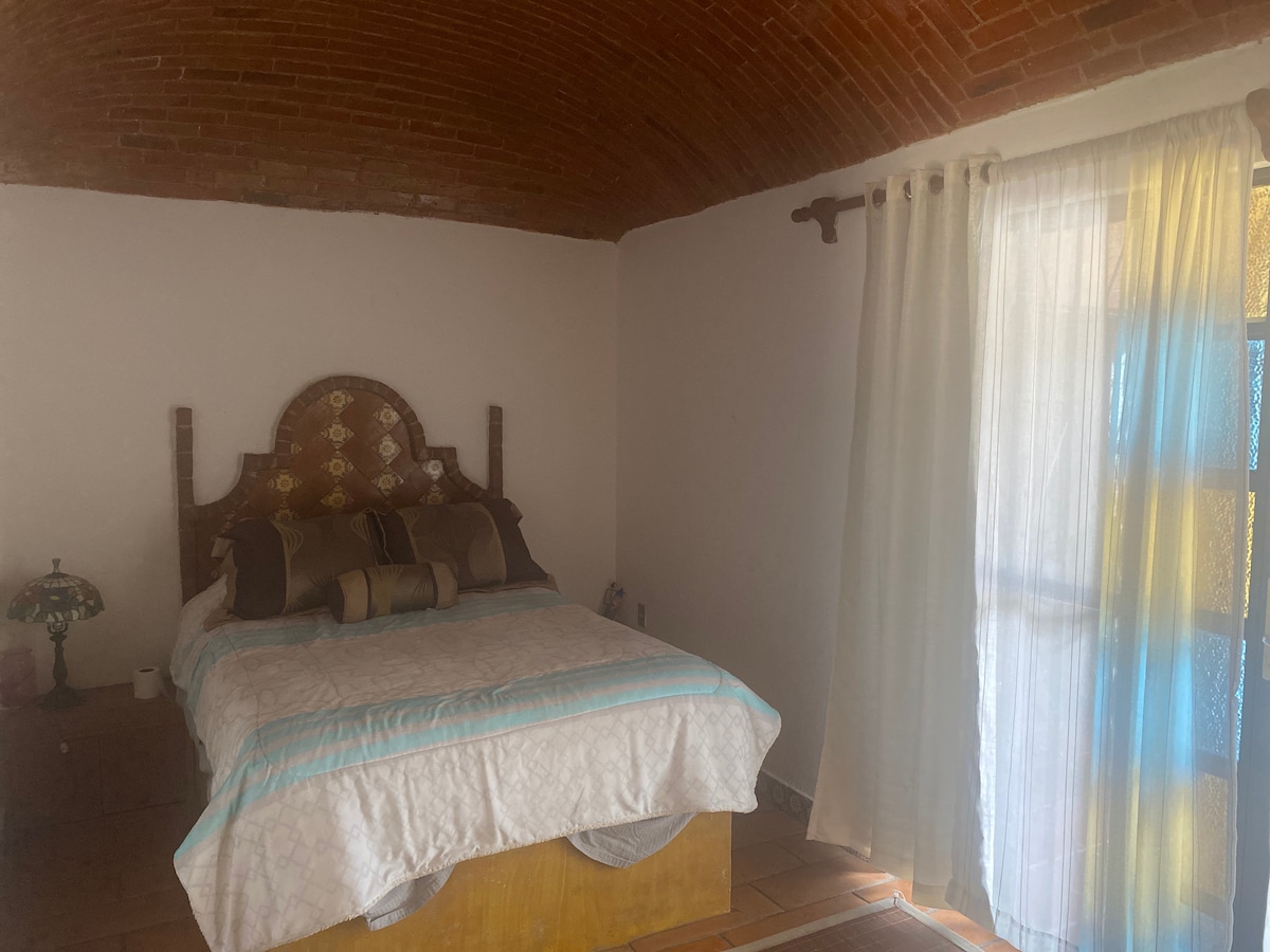Bungalow pentru 4 persoane situat în frumoasa grădină de cactuși a unei case rezidențiale într-o subdiviziune privată și sigură la 15 minute de satul Tequisquiapan. Terasă frumoasă cu grătar, grădină imensă cu hamace și vedere la sere și grădină divină. Parcare lângă casă, mic dejun suplimentar opțional, mașină de spălat și uscător, de asemenea, opțional.