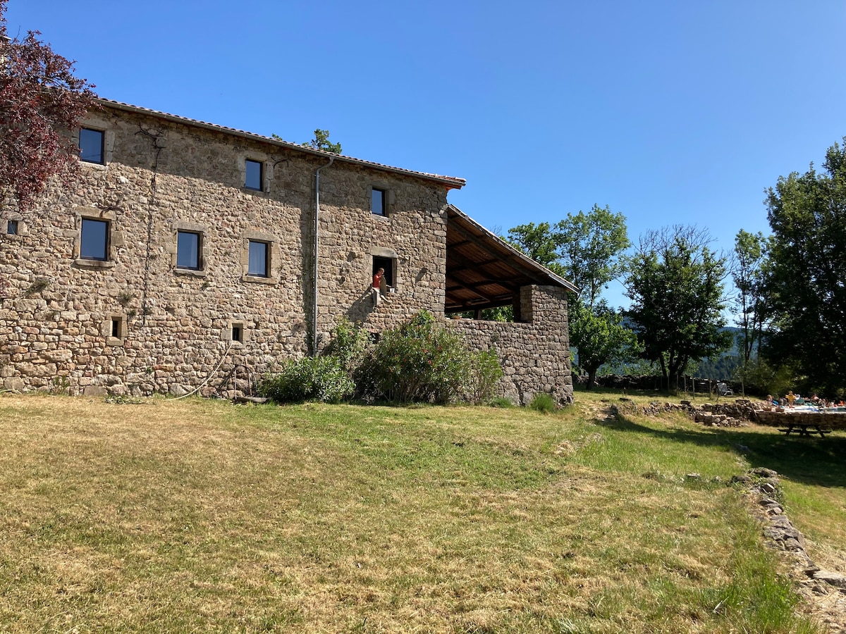 Dorința de calm, natura, cu priveliști uimitoare ale Monts d 'Ardèche, este aici. Ardéchoise a fost întotdeauna soțul meu din departamentul vecin, Haute-Loire. Te vom găzdui cu plăcere în cabana noastră. Ai 2 terase, inclusiv una la umbra umbrei de nuc. Grădină privată unde primii tăi vecini vor fi oile noastre. Multe situri naturale de vizitat (cascada Ray Pic, munții Gerbier de Jonc, lacuri...), sate cu caracter, drumeții, canotaj, via ferrata...