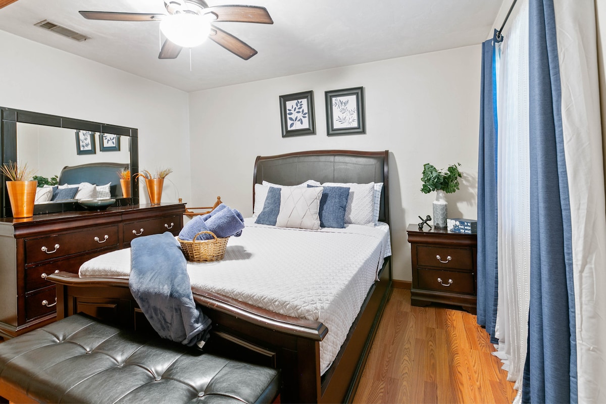 Bine ai venit la refugiul tău situat central în Midtown Tallahassee. Fiind la 15 minute de FSU și FAMU este o distanță perfectă și la aproximativ 5 minute de TMH & HCA. Această locație din cartier este liniștită. Experimentează o ședere liniștită în Suite and Simple, un apartament soacră situat în partea dreaptă a locuinței. Bucură-te de intimitatea propriei chicinetă, dormitor, baie și intrare privată. Poți dormi confortabil un total de patru persoane cu o canapea extensibilă care se extinde în două paturi duble.