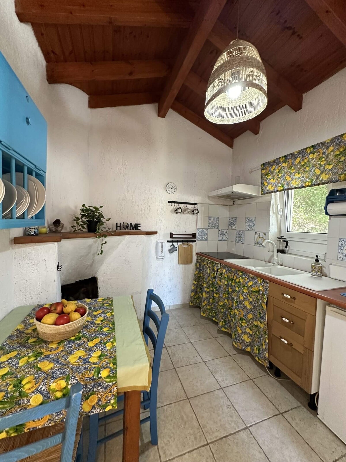 Autenticitatea mediului înconjurător și a casei, clădire de piatră veche de 200 de ani, ne-a inspirat să creăm un spațiu frumos și funcțional, plin de lumină, culori și păsări cântătoare, care pleacă de la ușile deschise ale balconului pentru a trece. Priveliștile uimitoare de la terasă și grădină, la suprafața mării și dealurile verzi, se vindecă și calmează. Aproape de munte, plaje, (10 minute distanță cu mașina) , orașul Corfu (25 min