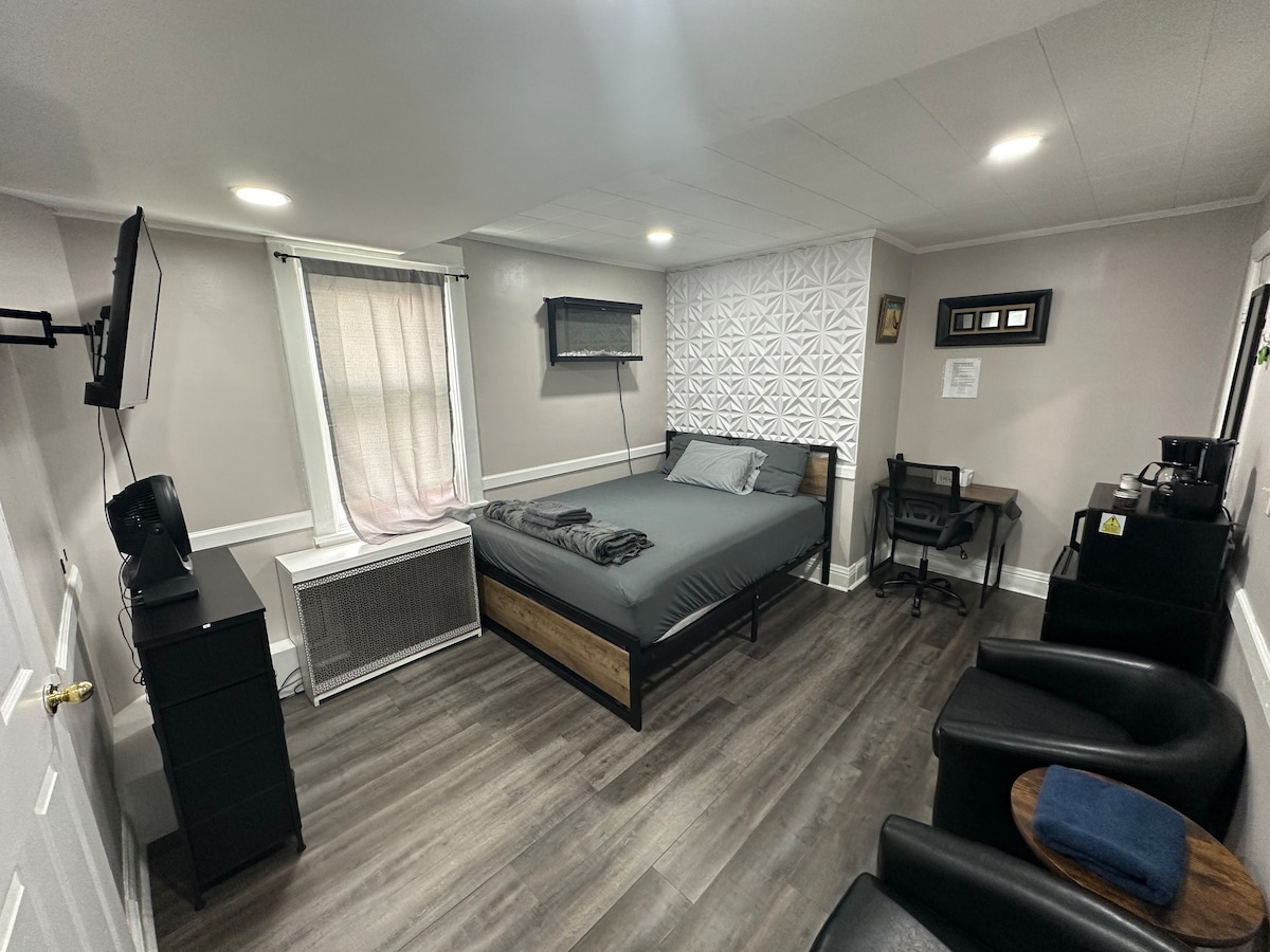 Studio confortabil la doar 20 de minute de NYC cu autobuzul și aproape de locurile de desfășurare a Cupei Mondiale! Bucură-te de un pat matrimonial confortabil, Wi-Fi rapid și o saltea gonflabilă matrimonială pentru oaspeți suplimentari. Chicinetă include un cuptor cu microunde, mini-frigider, chiuvetă, cafetieră și articole de toaletă (fără aragaz). Curate, private și aproape de restaurante, magazine și mijloace de transport în comun, perfecte pentru călători, cupluri și oaspeți la evenimente.