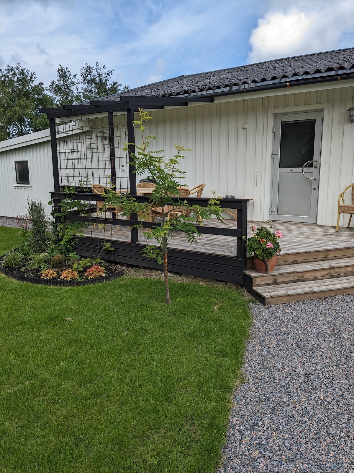 Închiriem o casă de oaspeți recent renovată și modernă pe proprietatea noastră. 200 de metri până la plaja puțin adâncă. 2 paturi de o persoană, precum și 1 canapea extensibilă, chicinetă cu frigider mic și congelator. Baie recent renovată. Distanță de mers pe jos până la Läjet și distanță cu bicicleta până la Apelviken și centrul orașului Varberg. Locație liniștită, cu zone de drumeții în rezervația naturală.