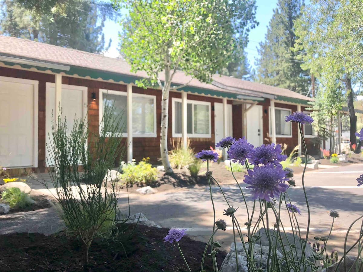 Our place is conveniently located between Sierra at Tahoe and Heavenly ski areas with access for hiking and bike paths. 5-10 min. to lakes, restaurants, beaches, casinos and shopping. This detached unit is tastefully decorated and includes microwave, refrigerator, coffee maker, Direct TV and WIFI surrounded by peaceful gardens. There are 8 steps down to the unit.