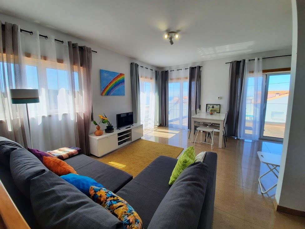 Apartament cu două dormitoare situat într-un apartament privat, ultimul rând de case cu vedere la far/plaja de nord și cel mai mare val surfing vreodată. Iarna (din octombrie până în martie) ai putea avea noroc să fii aici în timpul unei valuri mari, iar vara (din aprilie până în octombrie) te poți bucura de piscina noastră. Indiferent de anotimp, vederea la mare este întotdeauna disponibilă, este o zonă liniștită, în timp ce te afli la 5 minute de mers pe jos de centrul orașului Sítio da Nazaré.