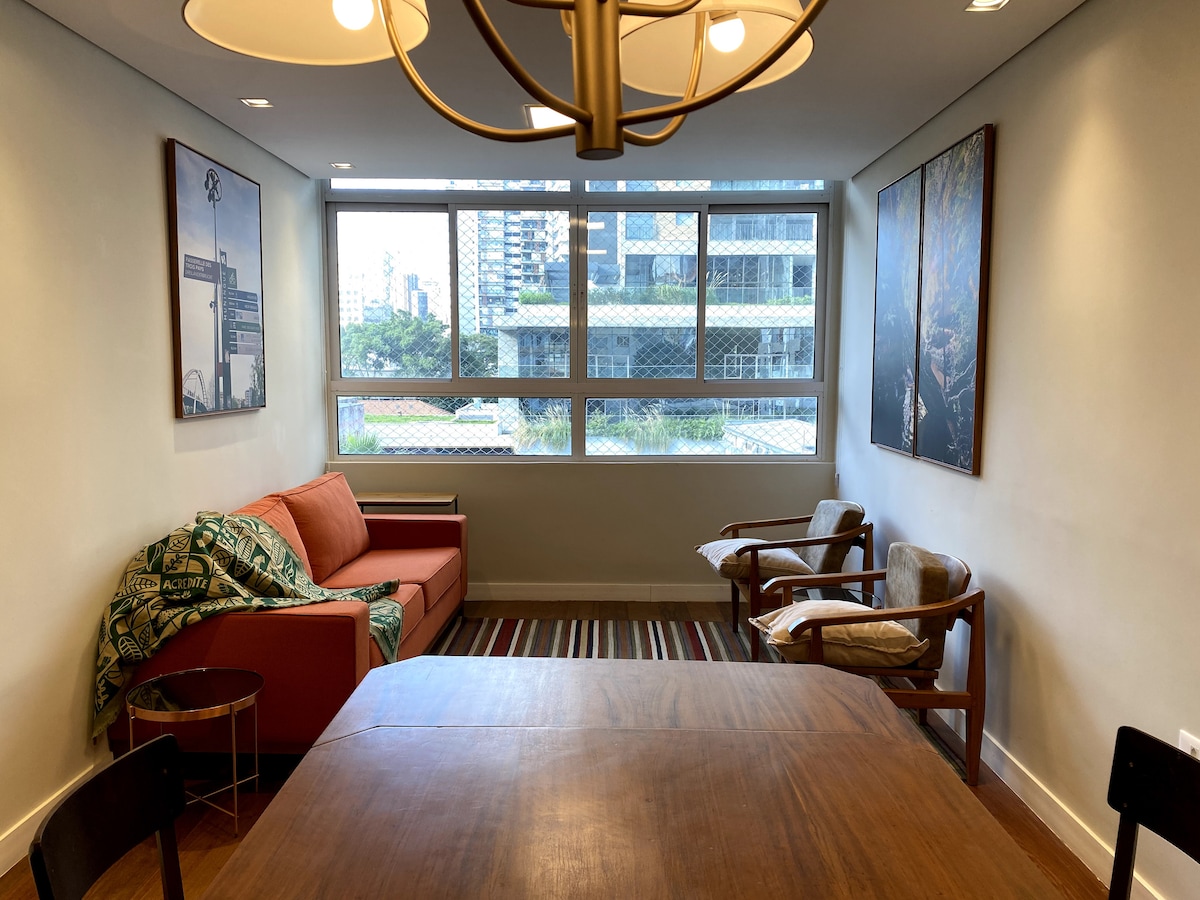 Mai mult decât o ședere: simte-te ca acasă în São Paulo Apartamentul ideal pentru cei care caută mai mult decât un loc simplu de dormit. Aici găsești confortul, caracterul practic și un mediu primitor — ideal pentru anotimpurile din oraș, fie pentru muncă, studiu sau turism. O locuință temporară cu structură completă, într-o poziție privilegiată. - Aproape de Pq Ibirapuera - 100 m de Spitalul São Luiz și Vila Nova Star - Parcare - Piscină - Saună - Sală de fitness - pază non-stop - Mini Market