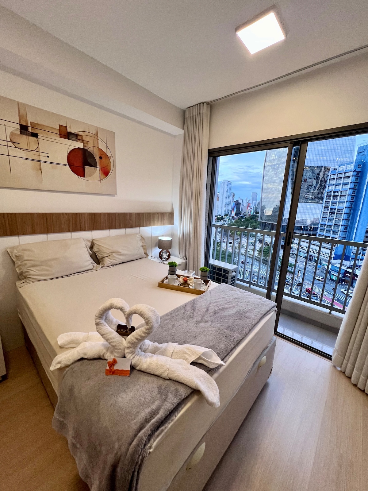 Studio frumos, cu o priveliște frumoasă asupra orașului de pe balcon, excepțional de complet și planificat. Asigurare, cu concierge blindat non-stop. Cazează-te la etajul 22 al imobilului cel mai apropiat de metroul Faria Lima și la 3 stații de Av. Paulista. Confortabil și practic, pat matrimonial, lenjerie completă, birou cu 2 ecrane 27', Wi-Fi rapid, bucătărie bine echipată, TV60', duș puternic și masă. Încă în clădire: piscină încălzită cu jacuzzi, coworking, sală de sport non-stop și spălătorie. Piață și baruri grozave alături!