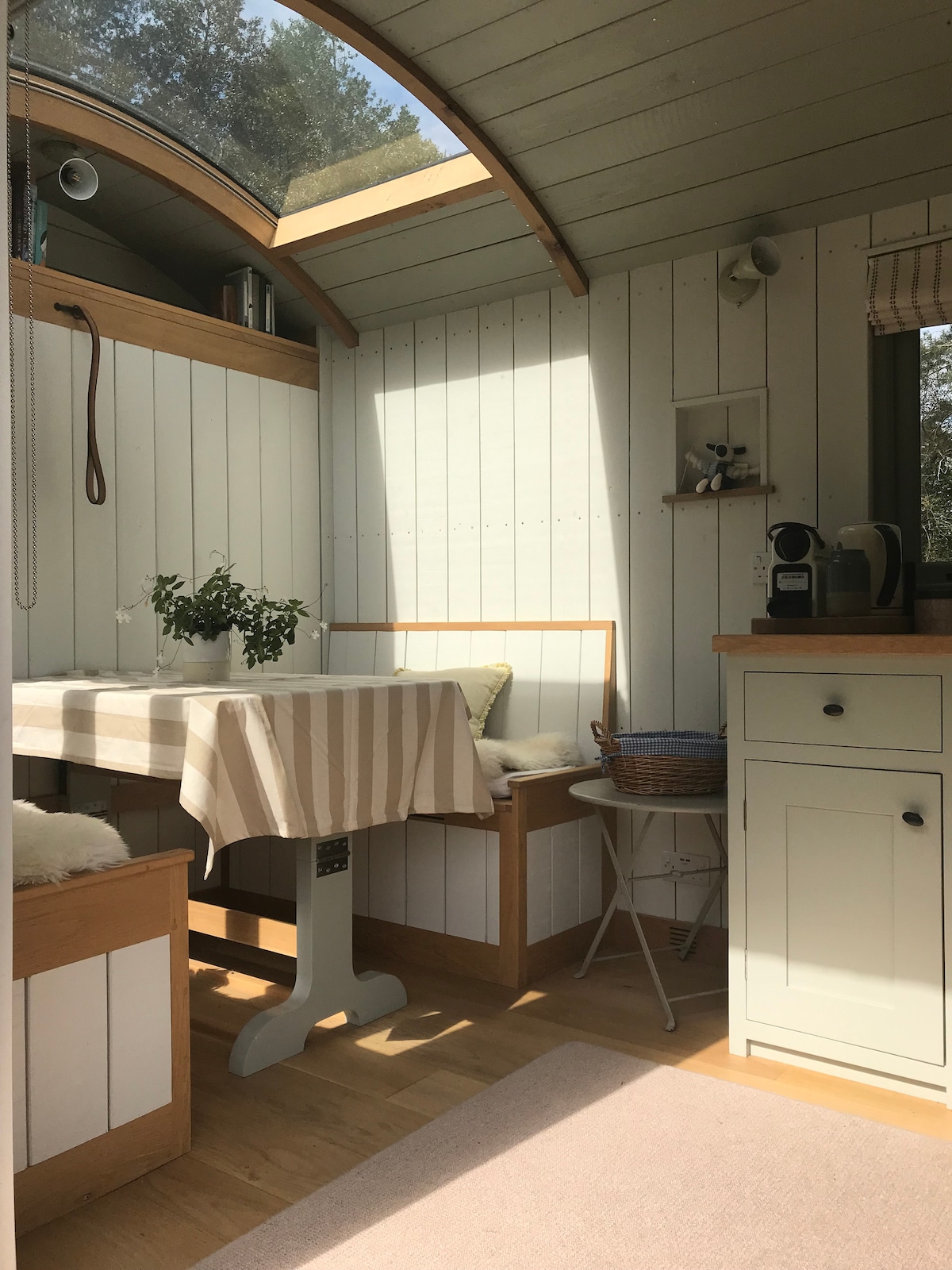 Evadează în fermecătoarea noastră stână, amplasată pe o suprafață de 16 hectare de pădure, livezi și grădini, într-o zonă de o frumusețe naturală remarcabilă, cu priveliști uimitoare. Este locul perfect pentru a te relaxa, a te bucura de apusuri de soare spectaculoase și a urmări numeroasele specii de păsări din jurul domeniului Kilnhanger. Pe domeniu se află, de asemenea, Kilnhanger Yoga Retreat, care oferă sesiuni de yoga și wellness, și Kilnhanger Equine, unde oaspeții pot avea posibilitatea de a-și aduce caii și de a explora frumoasele dealuri din Surrey.