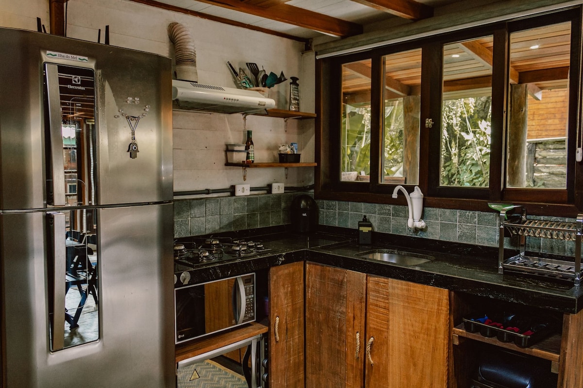 Casa Guapê este un spațiu elegant cu vedere la Sunset of Encantadas, precum și la magnificul Serra do Mar! Spațios, distractiv și bine amplasat. Are Wi-Fi, TV, bucătărie completă, foc de tabără, slackline și diverse hamace pentru odihnă. Apropo, casa este la 20 de pași de plajă. ATENȚIE: casa nu oferă lenjerie de pat și de baie. Pernele și saltelele sunt oferite cu huse. NOTĂ: Casă rustică cu decor durabil. Zgomot potențial în weekenduri, traseu aglomerat.