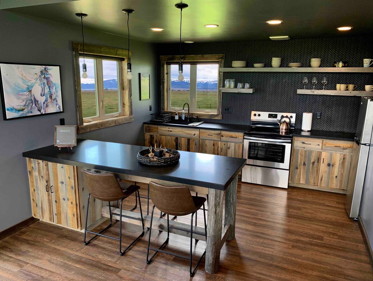 A modern and rustic cabin, built from our imaginations and vast inspirations. Designed for a comfortable, social, fun vacation; featuring a large yard, covered deck, hot tub and sauna with views to the Grand Tetons. Equipped with a gourmet kitchen and ustensils. Located Minutes from Grand Targhee and Teton river! A beautiful drive to Grand Teton NP and Yellowstone. it’s the perfect spot for your family vacation. Free EV lvl 2 charging station. Optional rental vehicle 2021 Ford Mach-E EV.