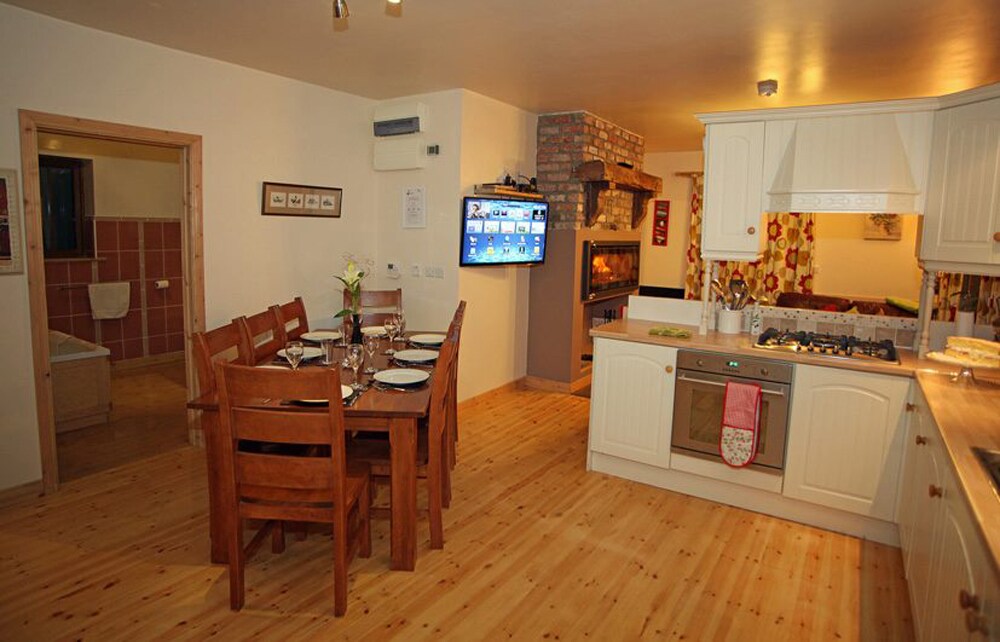 Self contained loft 1 bed sleeps up to 6 people upstairs is open planned, 1 double, 2 single & pullout mattress. Down stairs seating area with full kitchen, washing machine, tumble dryer, also shower-room. On request theres a choice of private king size bed en-suite with bathtub/shower. Outside sheltered sitting/eating area. Hot tub is added extra payable on arrival. kayaks available for hire with buoyancy aids, all persons must be swimmers. Local attractions Cuilcagh mountain & caves.