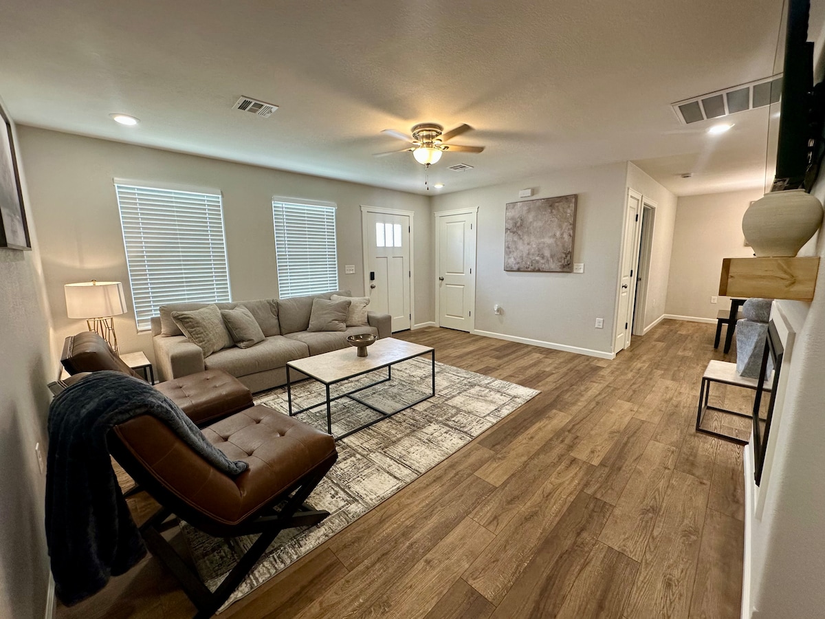 Rezervă-ți șederea cu această casă nouă construită, mobilată cu ideea de casă confortabilă departe de casă. Această locuință oferă 3 dormitoare și 2 băi și o bucătărie completă plus living. Vei găsi bucătăria aprovizionată cu necesitățile tale de gătit de bază, plus multe altele. (cuptor, frigider, cuptor cu microunde, oale, tigăi, ustensile de gătit, veselă, prăjitor de pâine, cafetieră, mașină de spălat vase) Fumatul interzis, animalele de companie interzise. Amenajări ale dormitorului Dormitor principal - pat matrimonial cu baie privată completă Dormitor pentru oaspeți - pat matrimonial „Queen” Cameră supraetajată - 2 paturi twin
