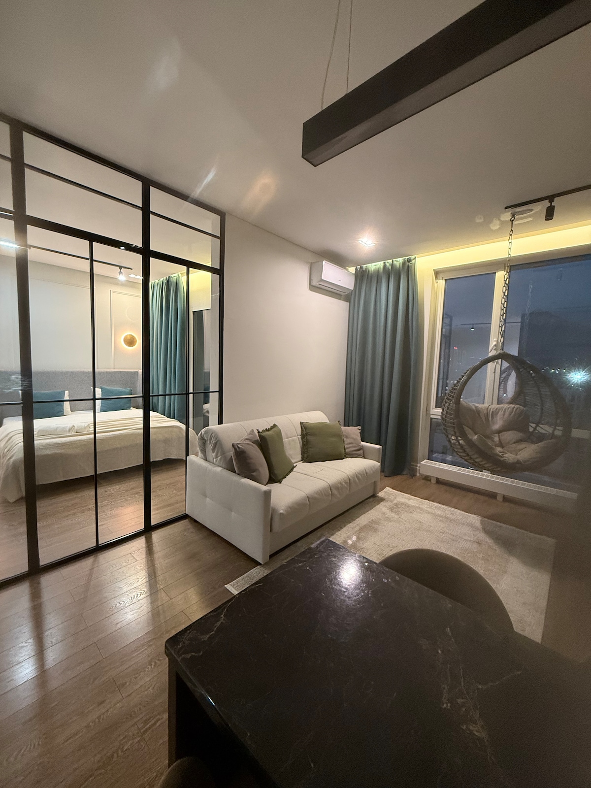 Bine ai venit! Suntem mândri să oferim una dintre cele mai bune experiențe pentru oaspeți din oraș. INDIGO este un apartament de designer creat pentru oaspeții care apreciază precizia arhitecturală, luxul calm și un mediu de viață rafinat. Fiecare element al spațiului este conceput cu atenție pentru a sprijini concentrarea, confortul și un sentiment de ordine fără efort. Situat în reședința Rams City, INDIGO oferă intimitate, securitate și vedere panoramică, fiind ideal pentru călătorii de afaceri, ocazii speciale sau o ședere liniștită de lux.