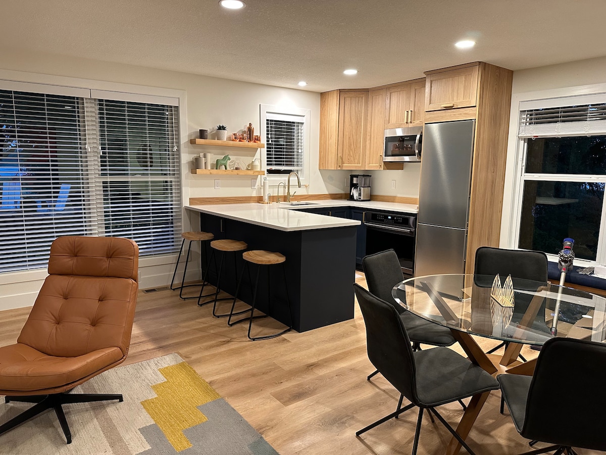 Bine ați venit la Northhaus! Această suită cu 2 paturi și 1 baie combină o estetică modernă cu un cadru natural. Privește apusul soarelui în timp ce te relaxezi în cada cu hidromasaj! Mini bucătărie limitată, blaturi din bloc de măcelărie, duș cu efect de ploaie de lux, TV cu ecran plat și cafetieră Acces rapid la 35 de minute de centrul orașului Mora, chiar lângă terenul de golf Spring Brook, Sapsucker Farms Cidery și la doar 15 minute de mers cu mașina de crama Ann River. Multe oportunități de recreere în aer liber la Knife Lake, Fish Lake sau Mora Lake