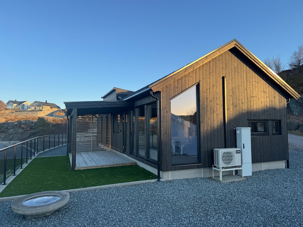 Cabana modernă din 2022 este situată în zona de plajă de la Herlandsneset, la capătul Atløy din municipalitatea Askvoll din Sogn og Fjordane. Terenul este însorit, cu vedere panoramică la mare, care poate fi savurată din cada cu hidromasaj a cabanei. Există o priveliște fabuloasă de la cabană spre insula Kinn în nord-vest, o marcă specială și cunoștințe cunoscute sub numele de marcă de navigație de-a lungul coastei. La sud se află binecunoscutul punct de vedere Brurastakken și populara insulă de drumeții Alden, numită și Norske Hesten. Cu barca cu motor a cabanei poți merge acolo și la Værlandet și Bulandet.