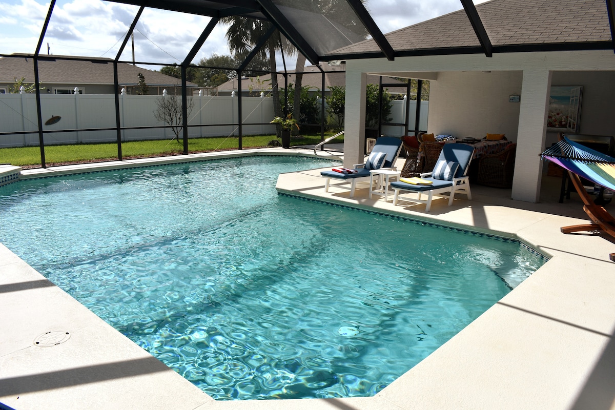 Un apartament cu un dormitor, la 2 mile de autostradă, atașat la o casă principală cu intrare privată, acces la piscina încălzită solară comună, cu decor de palmier, într-un cartier frumos/liniștit. 15 minute de mers cu bicicleta până la plajă, 7 minute de mers cu mașina până la plaja Jungle Hut sau la 15 minute de mers cu mașina de plaja Flagler. 5 minute de mers cu mașina până la supermarketuri, magazine și restaurante. Distanță de mers pe jos până la canalele intercostale/cu apă sărată.,