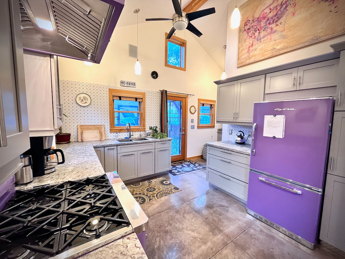 Casă de oaspeți modernă de 450 mp, perfectă pentru persoane singure, cupluri și familii cu copii mici! Elden Vista Casita este situat convenabil într-o locație centrală la poalele Muntelui Elden, situat în curtea din spate a gazdelor, la 16 ft. de casa principală. Bucură-te de pensiunea detașată cu toate facilitățile sale; aer condiționat, încălzire, intrare separată, terasă, grătar, groapă de foc și curte privată mică. La câțiva pași de trasee de ciclism forestier și drumeții și la câteva minute DE nau, centrul orașului, cumpărături și restaurante.