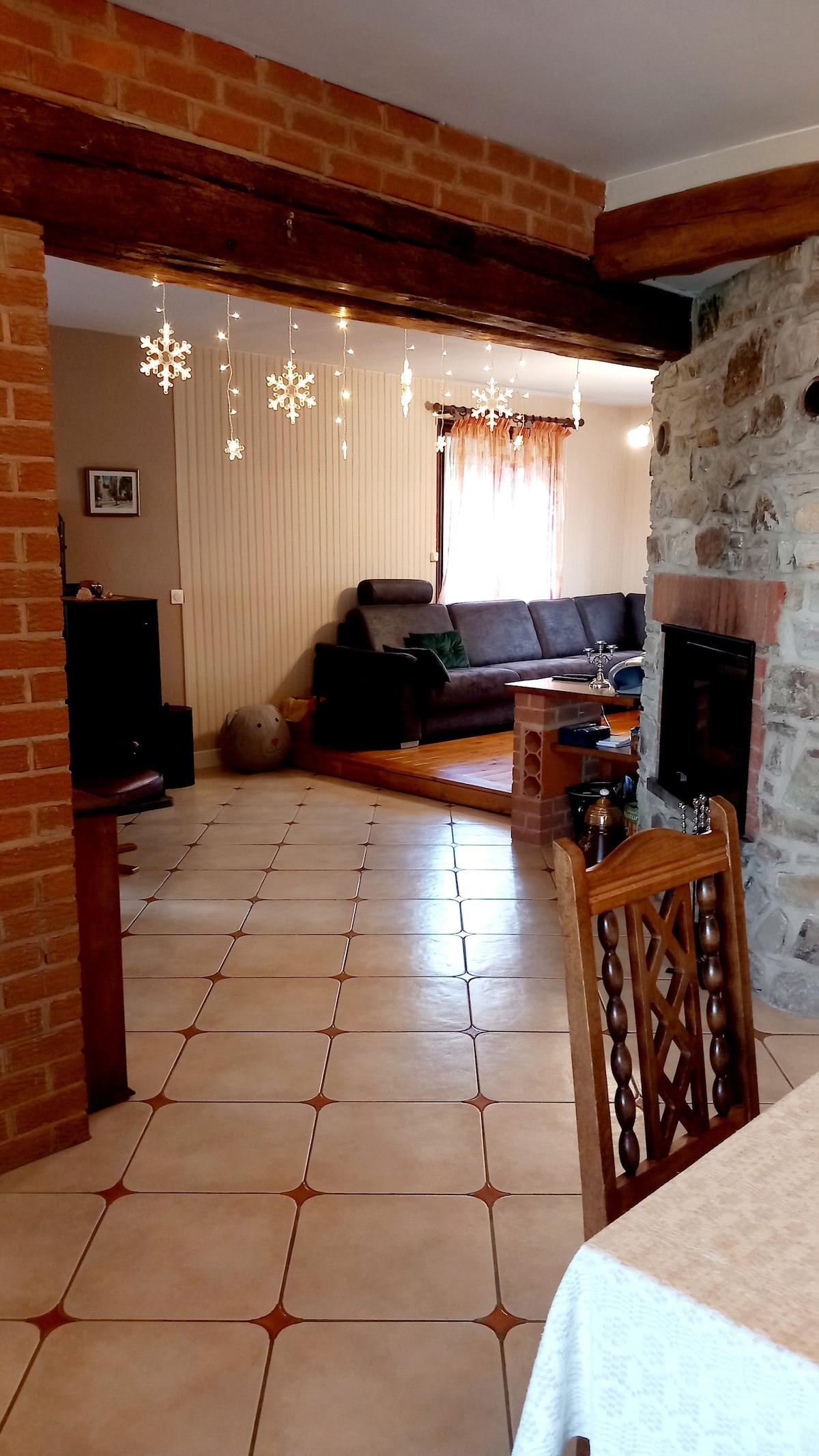 Gite de 100 m². entièrement neuf réalisé dans une grange. Chauffage électrique avec poêle à bois. Cuisine entièrement équipée (lave vaisselle, réfrigérateur, congélateur, four + micro ondes, etc..). Idéal pour le repos et profiter du calme de la nature. Situé en pleine campagne sans aucun vis à vis avec l'extérieur. Propriété à partager avec la propriétaire. coin terrasse privée, barbecue, balançoire, toboggan. WIFI gratuit. Netflix Taxe de séjour en supplément : 1,21 / adulte/jour